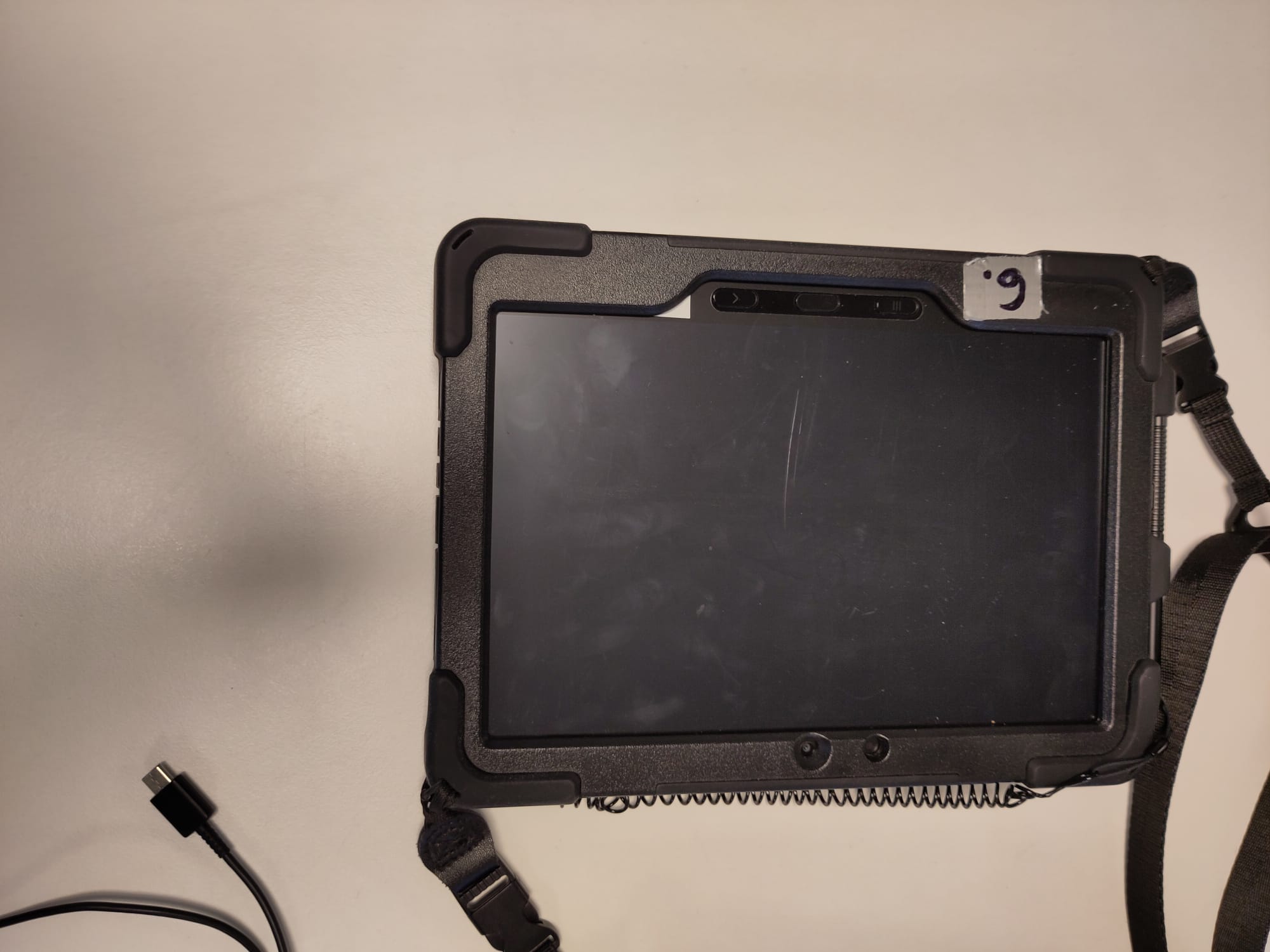 Enheten er utstyrt med berøringsskjerm, digitaliseringspenn, kamera, håndtak og bæresele.