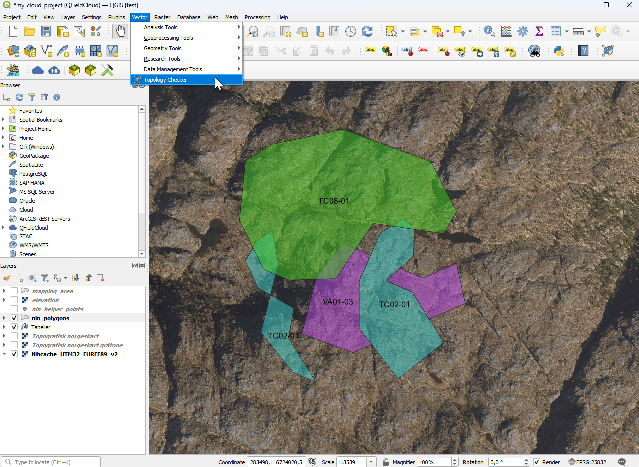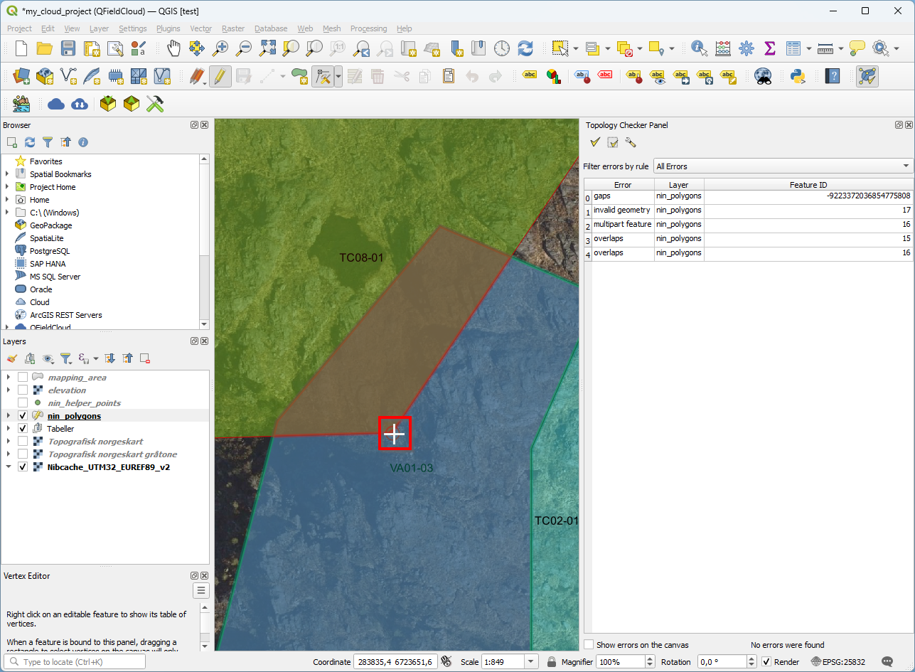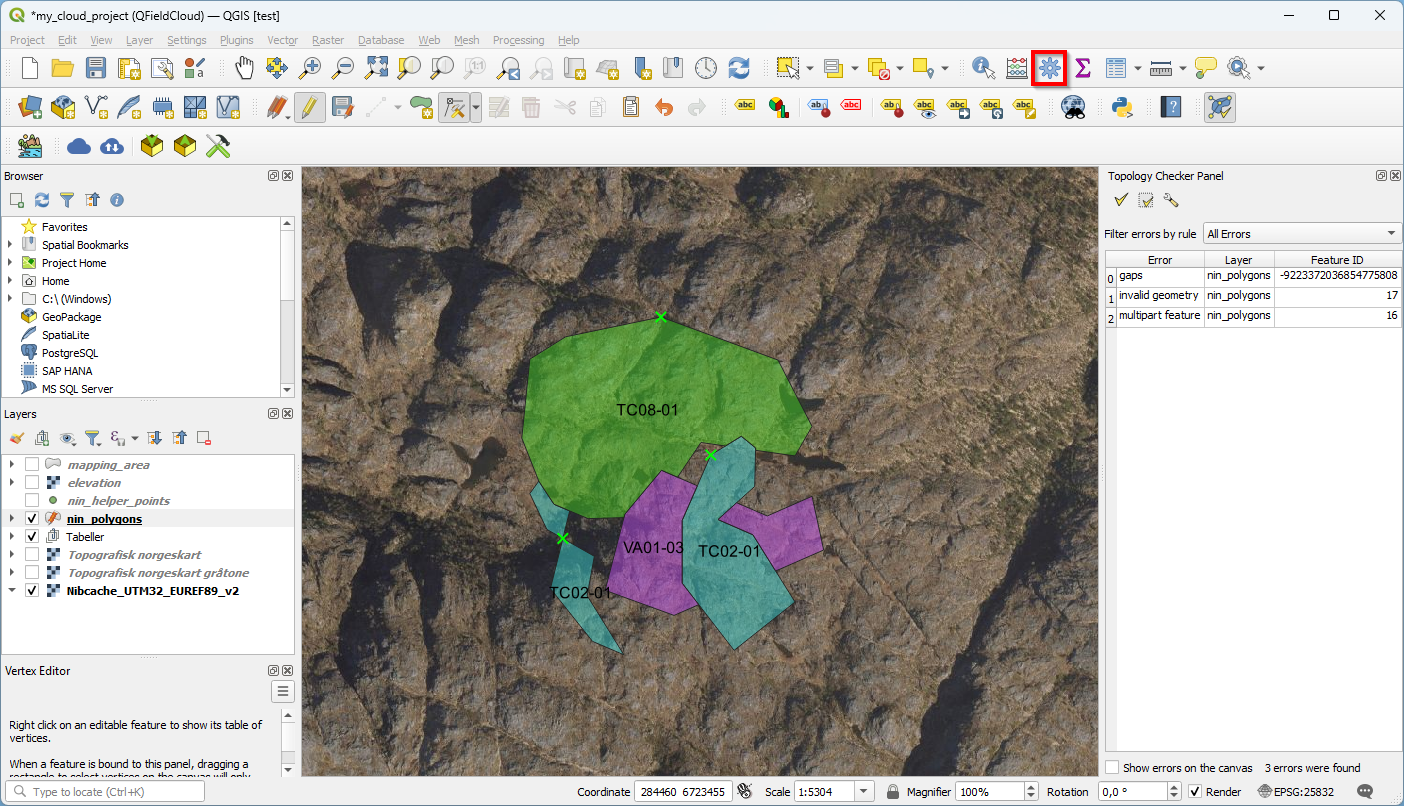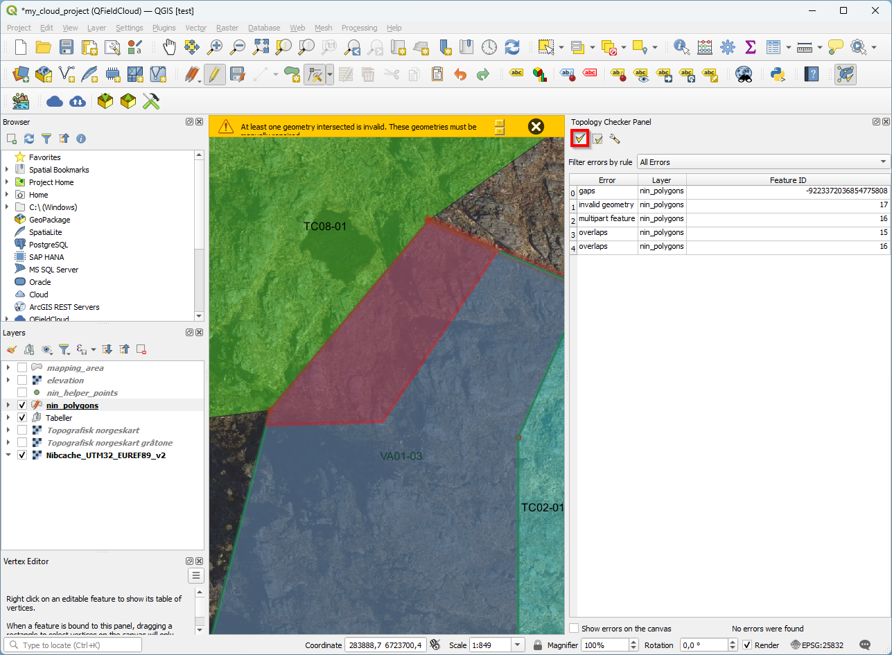 6.2.1 Gå til Vector i menylinjen og klikk på Topology Checker