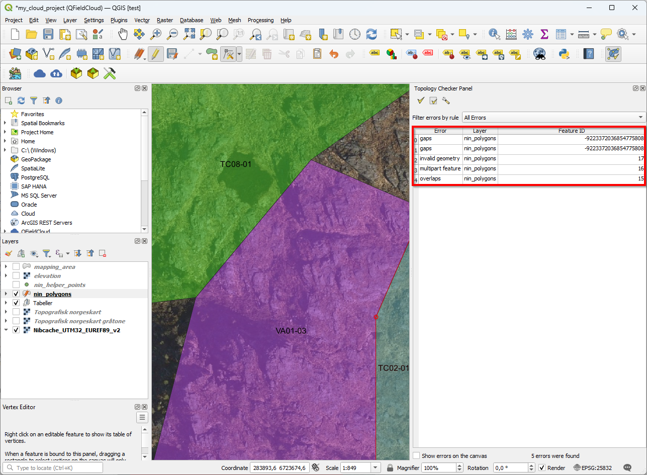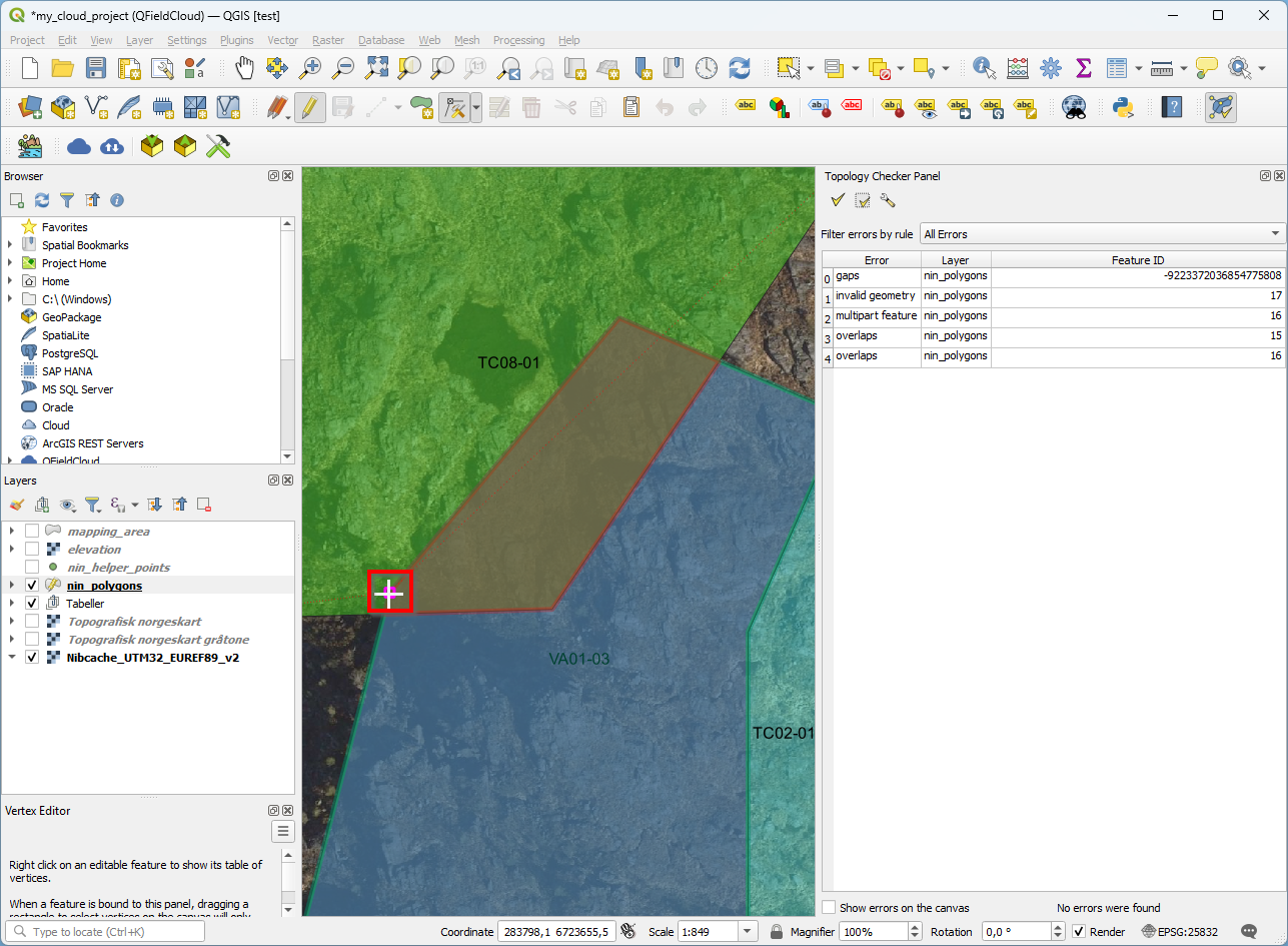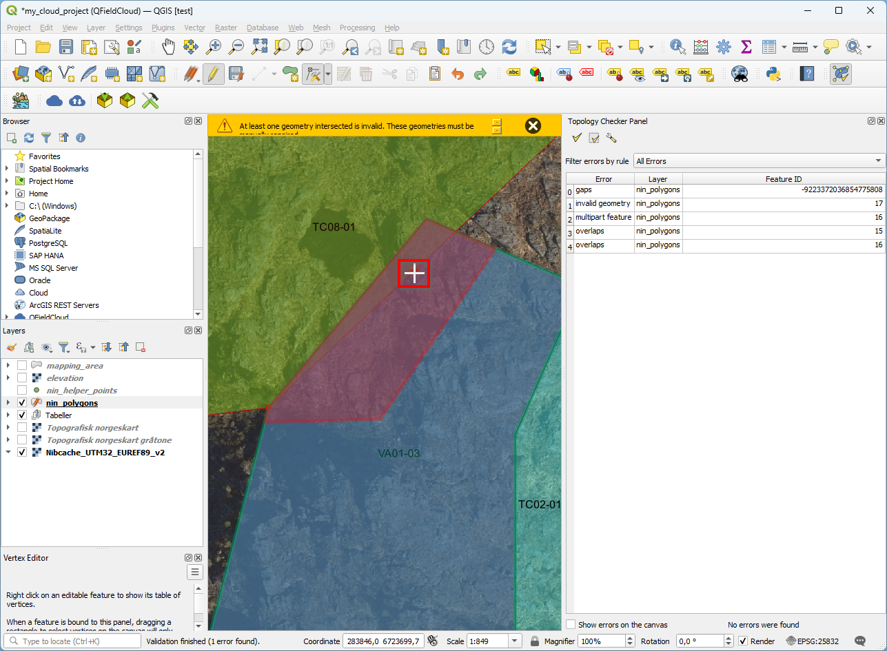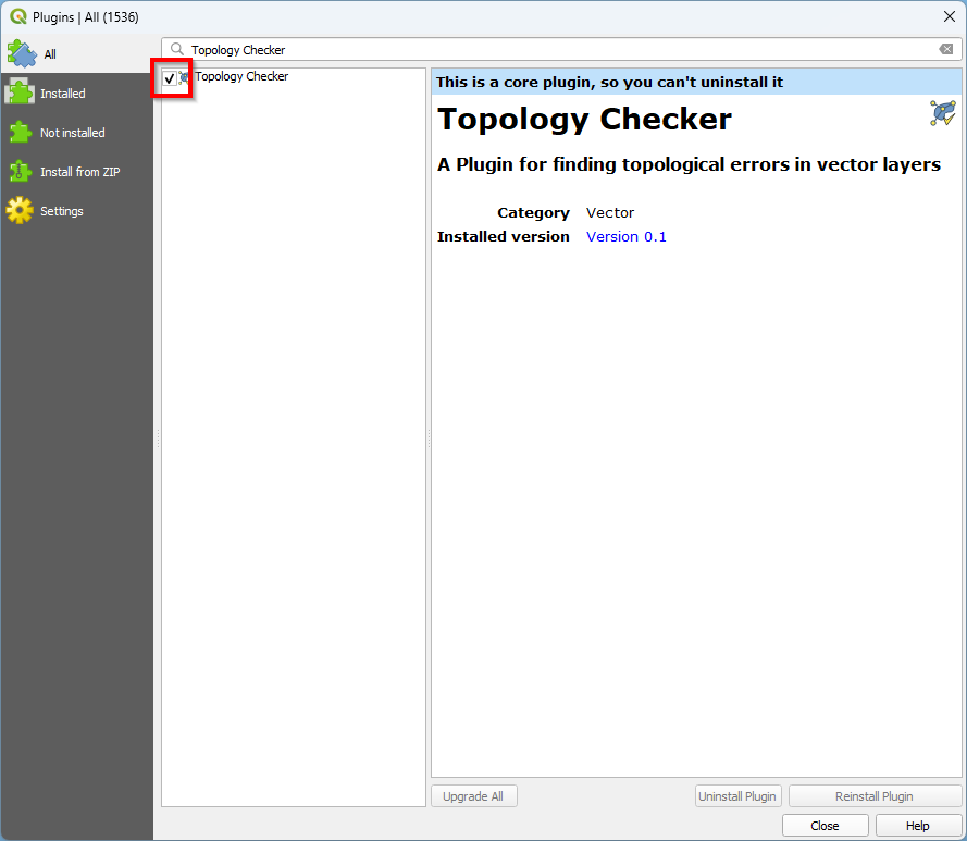 6.2.1 Gå til Vector i menylinjen og klikk på Topology Checker