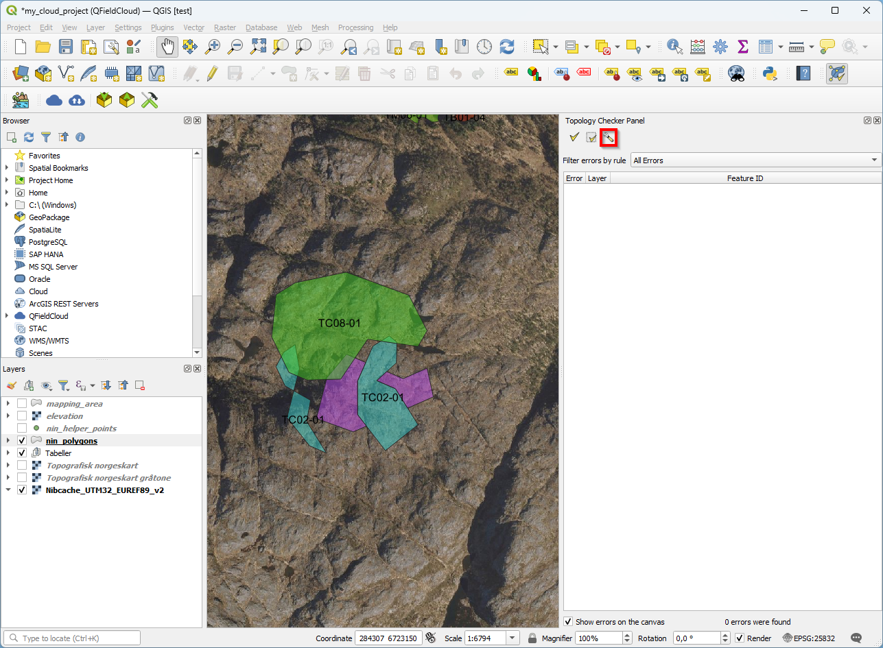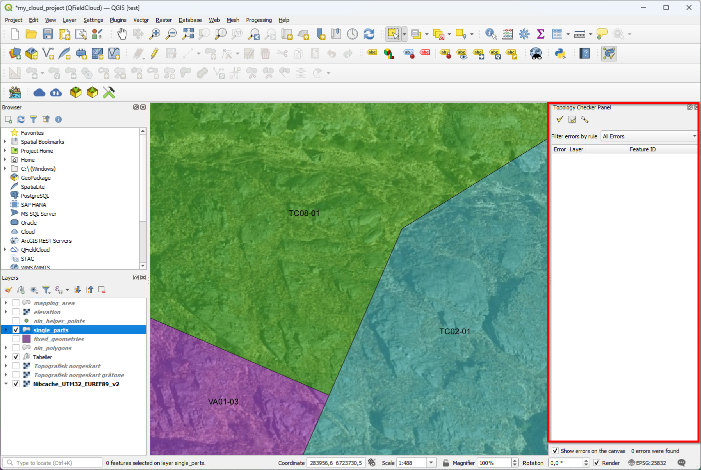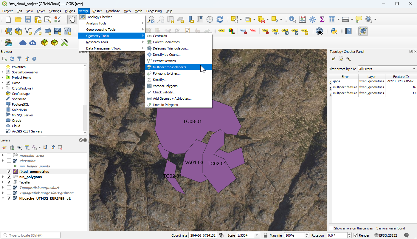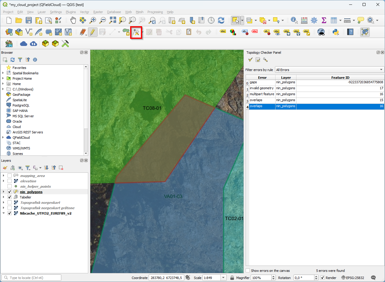 6.2.1 Gå til Vector i menylinjen og klikk på Topology Checker