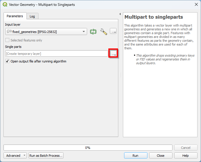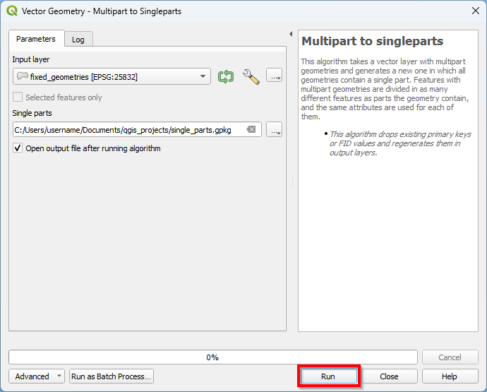Når du igjen klikker på Validate All vil du se at det ikke er flere geometrier med flere atskilte deler.