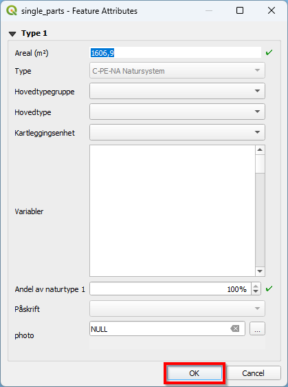 Det vil ikke være mulig å bruke de samme registreringsskjemaene under utfigurering av nye polygoner uten å tilegne det nye polygonlaget den samme stilen som det opprinnelige kartlaget.