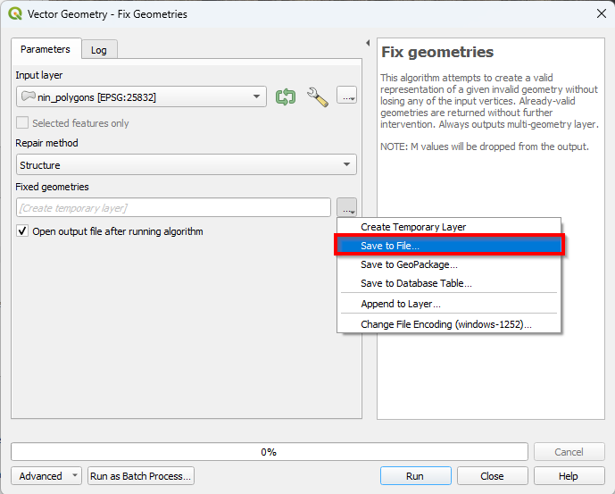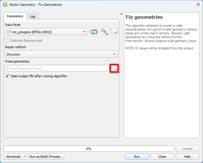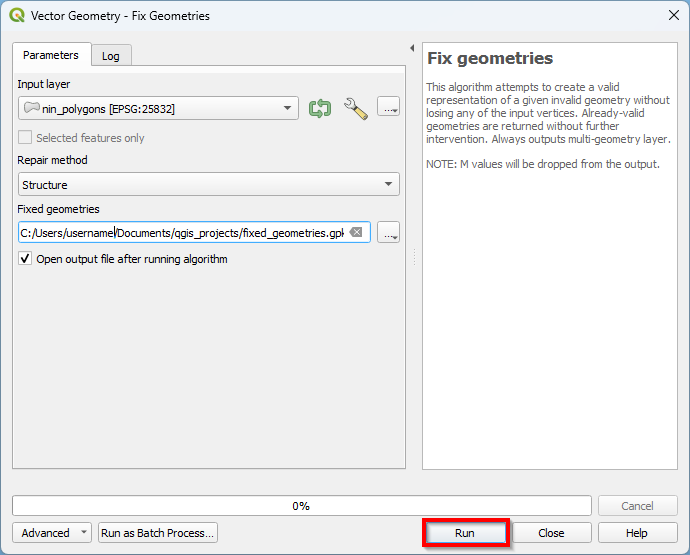 Når du igjen klikker på Validate All vil du se at det ikke er flere invalide geometrier.