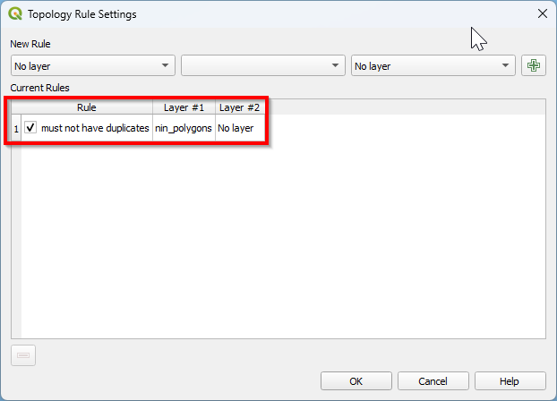 Du har nå opprettet en regel som sier at kartlaget ikke skal inneholde duplikater.